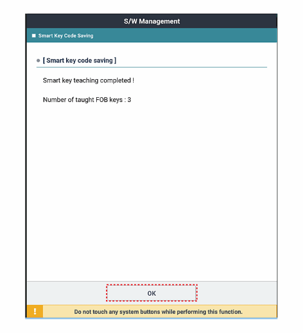 Daraufhin erscheint der unten angezeigte Bildschirm, wenn die Schlüsselprogrammierung abgeschlossen ист.