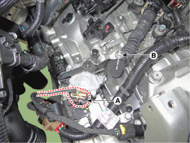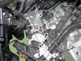 Die Bohrung (B) im manuellen Steuerhebel auf die Bohrung (A) der Position "N" des Sperrschalters ausrichten, dann den Sperrschalter-Führungsstift (09480-A3800) айнсетцен.