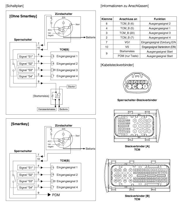 Sperrschaltersignale (S1, S2, S3, S4) werden entsprechend der Wählhebelsteuerung das TCM übertragen. |