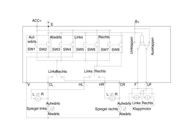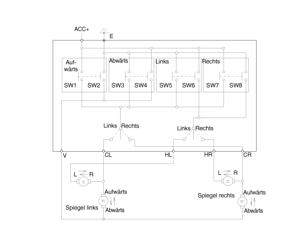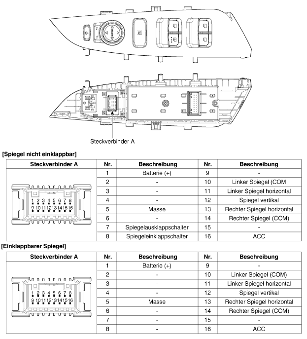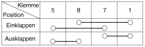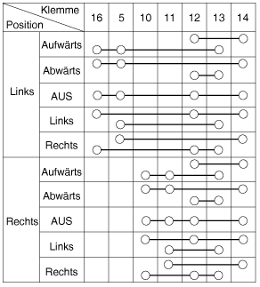 In den einzelnen Schalterstellungen gemäß der folgenden Tabelle auf Durchgang zwischen den Klemmen prüfen. [Шальтер электриш верстеллбарер Шпигель]