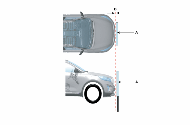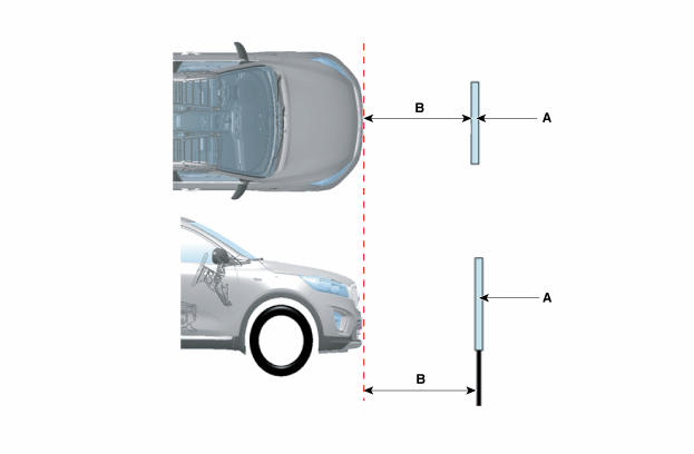 Das Ziel (A) wird entlang der Fahrzeuglängsachse