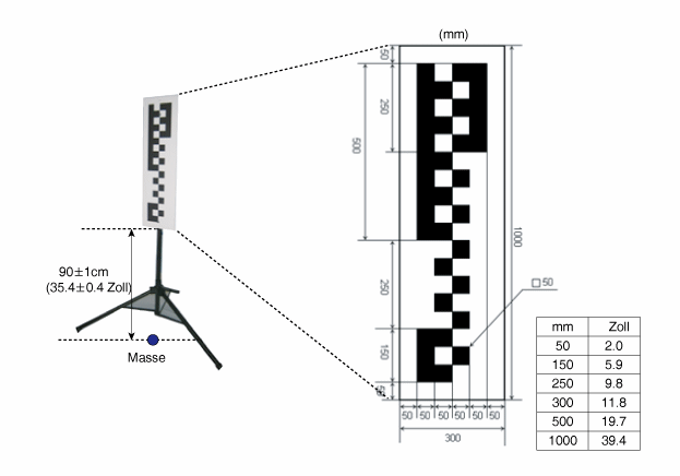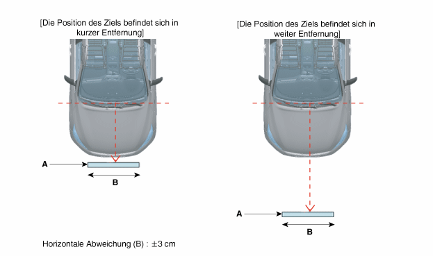 Die Zielposition (A) bei langem Abstand beträgt 100 ±