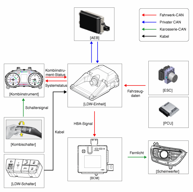 Die Kameraeinheit der LDW führt durch Verarbeitung des Videoeingangssignals folgende