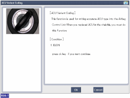 Zündung "EIN" und Motor "AUS" Fahrzeugname und Airbag-System auswählen. |