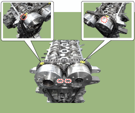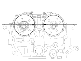 Die Markierungen am Kettenrad der Ausgangsnockenwelle und der Einlass-CVVT an der Oberfläche des Zylinderkopfs ausrichten. Kolben des Zylinders Nr. 1 befindet sich dann am oberen Totpunkt (Kompressionshub).