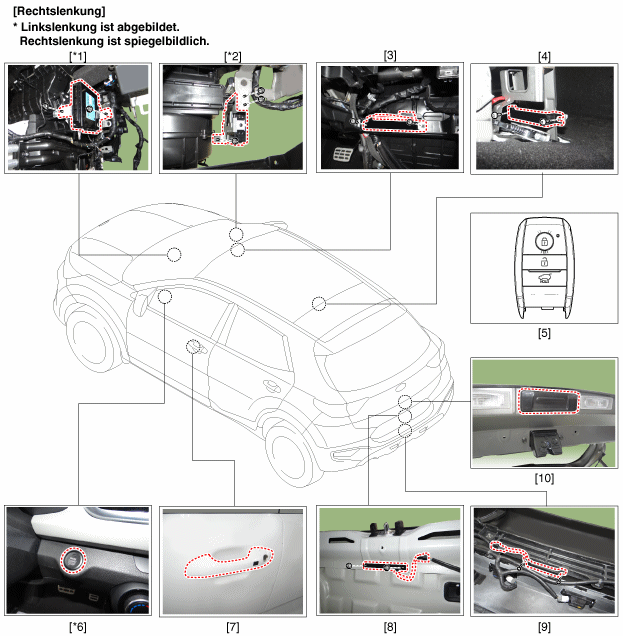 Sie sammelt Informationen zum Fahrzeugstatus von anderen Modulen (Fahrgeschwindigkeit, Alarmstatus, Fahrertür offen...), ложный сигнал Eingänge (z.B. SSB, kapazitiver Sensor) / Verriegelungstaste, PARK-Stellungsschalter), steuert die Ausgänge (z.B. Außen- und Innenantennen) и kommuniziert über das CAN-Netzwerk und über Schnittstellen mit einfacher Leitung mit anderen Geräten.