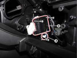 Steckverbinder (A) abklemmen und dann den Temperatur-Stellantrieb (B) nach dem Lösen der Befestigungsschrauben ausbauen.