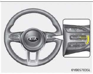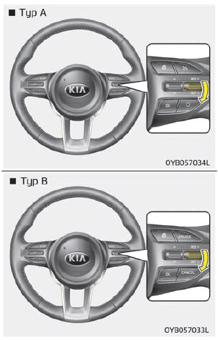 3. Drücken Sie den Hebel nach unten (в Richtung SET-) и lassen Sie ihn bei Erreichen der gewünschten Geschwindigkeit лос. Die Tempomat- Kontrollleuchte leuchtet auf. Lassen Sie gleichzeitig auch das Газпедаль лос. Die eingestellte Geschwindigkeit автоматическая монахиня beibehalten.
