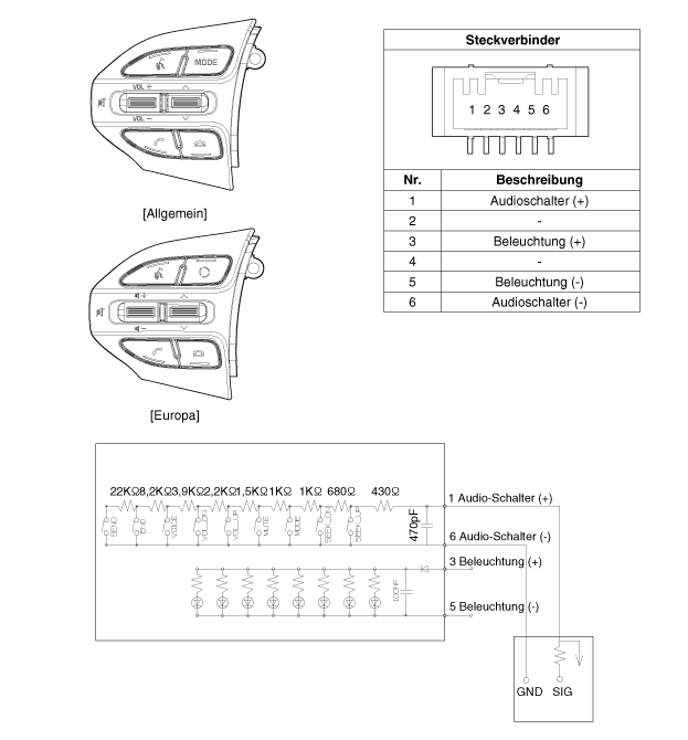 Steckverbinder der Lenkradfernbedienung anschließen. |
