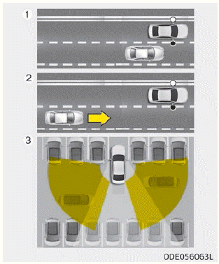 3. Querverkehrswarnsystem (RCCW) Wenn Ihr Fahrzeug rückwärts fährt, erkennt der Sensor Fahrzeuge ссылки oder rechts neben Ihrem Fahrzeug und gibt eine Warnung aus.