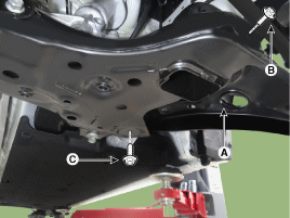 Unteren Tragarm (A) vom Hilfsrahmen entfernen.