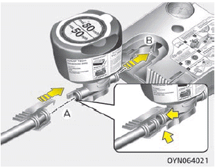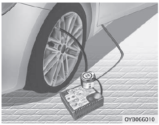 9. Schließen Sie den Kompressor mit dem Kabel und den Verbindern an умереть Fahrzeug-Steckdose an.
