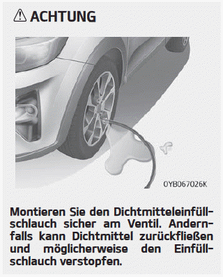 10. Wenn sich der Zündschalter bzw. дер Кнопф ДВИГАТЕЛЬ СТАРТ/СТОП (Motorstart/-stopp) в положении ON befinden, schalten Sie den Kompressor Эйн и Лассен Ин ок. 3 минуты Лауфен, гм дас Дихтмиттель эйнзуфюллен. Der Reifendruck nach dem Füllen ist nicht entscheidend.