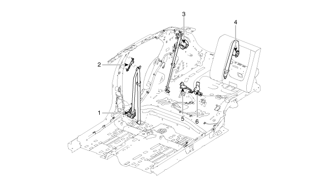 5. Rücksitz-Gurtschloss (rechts und Mitte)