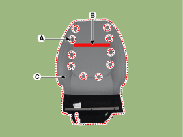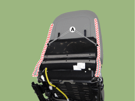 Vordersitzlehnenbezug (A) vom Vordersitzrahmen entfernen.