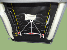 Klettband (A) и Ringclips (B) entfernen, dann Rückenlehnenbezug (C) фон дер Vorderseite де Rückenlehnenrahmens entfernen.
