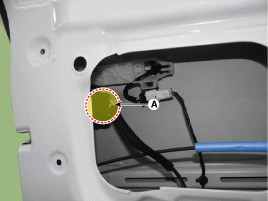 Steckverbinder (A) des Vordertürlautsprechers abziehen, dann Befestigungsclips der Verkabelung entfernen.