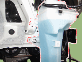 Schrauben lösen und Ausgleichsbehälter (D) ausbauen.