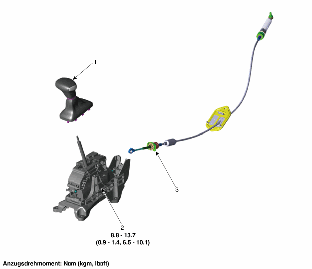 Seilzugfassung (A) vom Wählhebel entfernen.