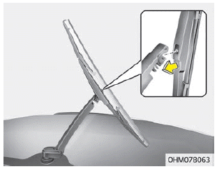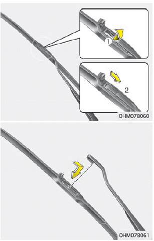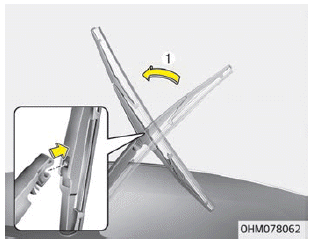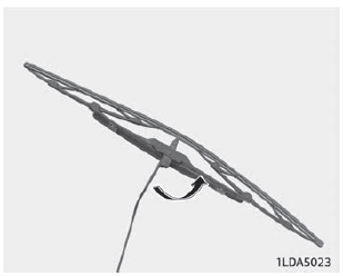 1. Heben Sie den Wischerarm и drehen Sie das Wischerblatt, um an die Kunststoffklammer zu gelangen.