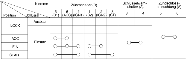 Steckverbinder von Zündschalter und Schlüsselwarnung / Wegfahrsperre аншлиссен. |