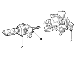 Zündschalter-Steckverbinder (A) и Steckverbinder (B) von Schlüsselwarnung / Wegfahrsperre entfernen.