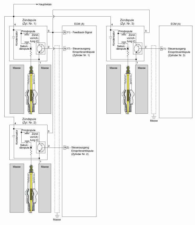 Eine Zündspule ist eine Induktionsspule in einem Motorzündsystem, dass die niedrige Spannung der Batterie in die Hochspannung umwandelt, die benötigt wird, einen elektrischen Funken in den Zündkerzen zu erzeugen, damit der Kraftstoff entzündet werden kann. Zündspulen verfügen über einen internen Widerstand, wohingegen andere einen Widerstandsdraht oder einen externen Widerstand dafür verwenden, den Strom von der 12-V-Versorgung der Batterie in die Spule zu begrenzen.