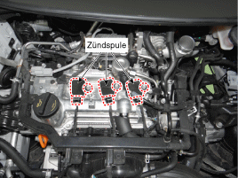 Befestigungsschrauben lösen, dann Zündspule (A) ausbauen.