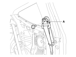 Снимите верхнюю крышку крепления переднего ремня безопасности (А).