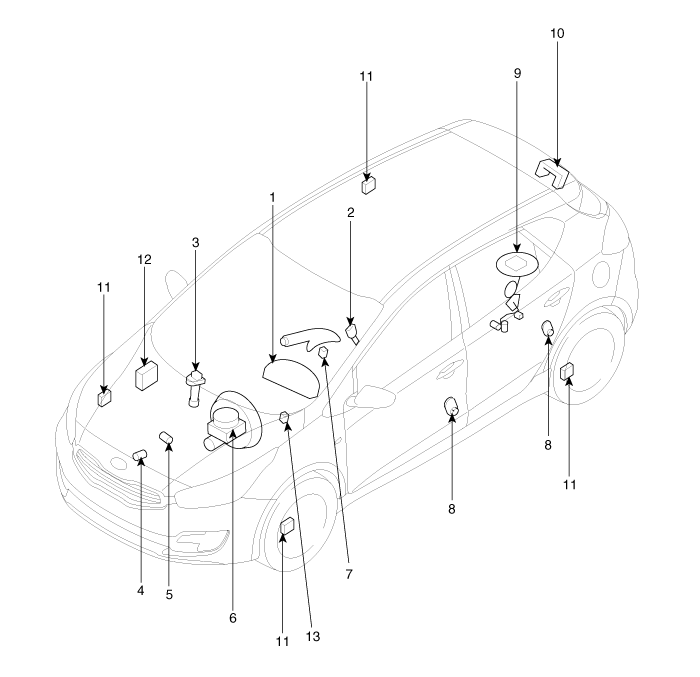 Руководство по обслуживанию Kia Cee'd JD: Блок экстренного вызова (eCall) Компоненты и расположение компонентов