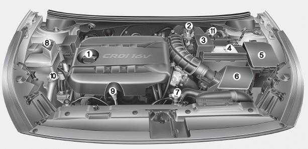 1. Крышка заливной горловины двигателя
