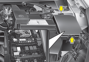 После проверки блока предохранителей в моторный отсек, установите надежно закройте крышку блока предохранителей. Если не, утечка воды может привести к поражению электрическим током неудачи.