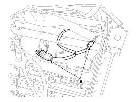 Отсоедините разъемы обогревателя переднего сиденья (А).