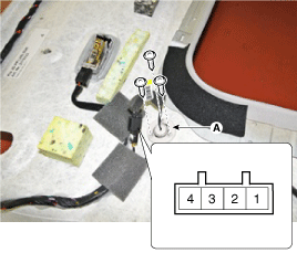 Снимите микрофон громкой связи (A) после отсоединения разъема и