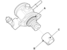 Отсоедините разъем клапана регулятора давления топлива (А).