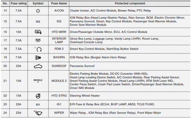 Фактическая этикетка на панели предохранителей/реле может отличаются от экипированных предметов.