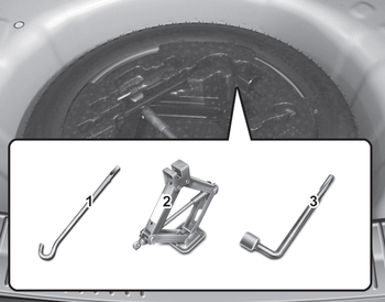 Домкрат, ручка домкрата, гайка крепления колеса ключ хранится в багаже купе.