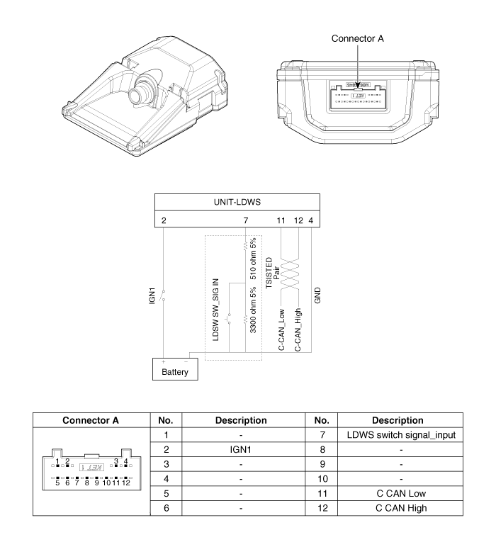 Процедуры ремонта блока системы предупреждения о выходе из полосы движения (LDWS)