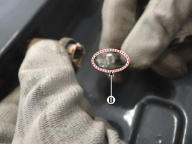 Снимите лампу лампы номерного знака (B) после извлечения патрона лампы номерного знака.