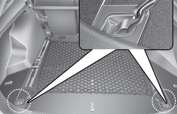 Чтобы предметы не смещались в грузе область, вы можете использовать четыре держателя, расположенные в грузовом отсеке для крепления багажа сеть.