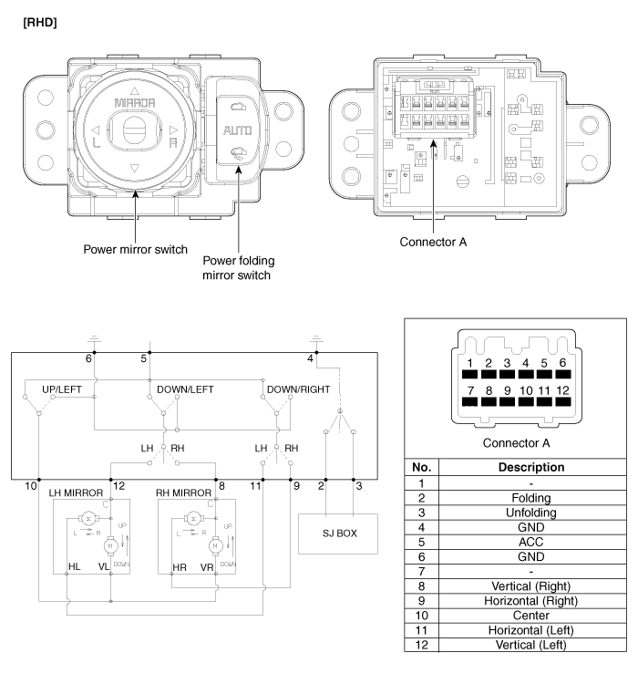 Переключатель питания наружных зеркал заднего вида Процедуры ремонта