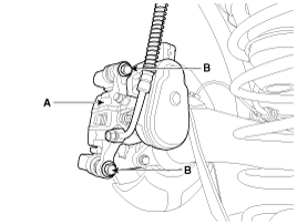 Ослабьте болты крепления суппорта (В), затем снимите задний суппорт.
