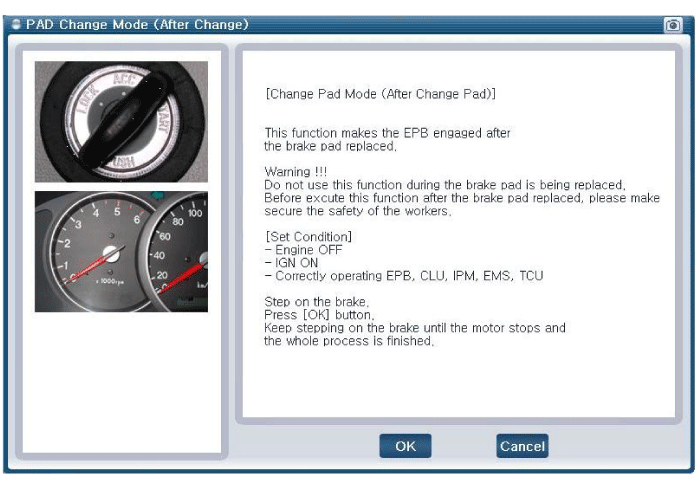 Выполните процедуру «Режим замены колодки (перед заменой колодки)» с помощью GDS.