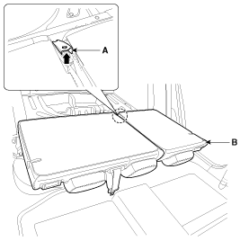 Снимите крышку кронштейна центрального шарнира спинки заднего сиденья (А).