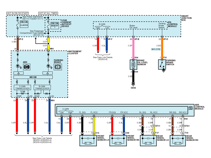 сигнал датчика скорости колеса FL, FR, RL, RR