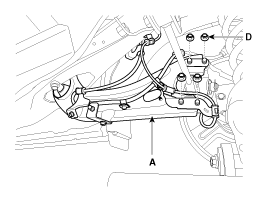 Ослабьте болт (B,C) и гайку (D), затем снимите задний продольный рычаг.