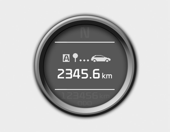 Рабочий диапазон счетчика от 0,0 до 9999,9 км (от 0,0 до 9999,9 миль).