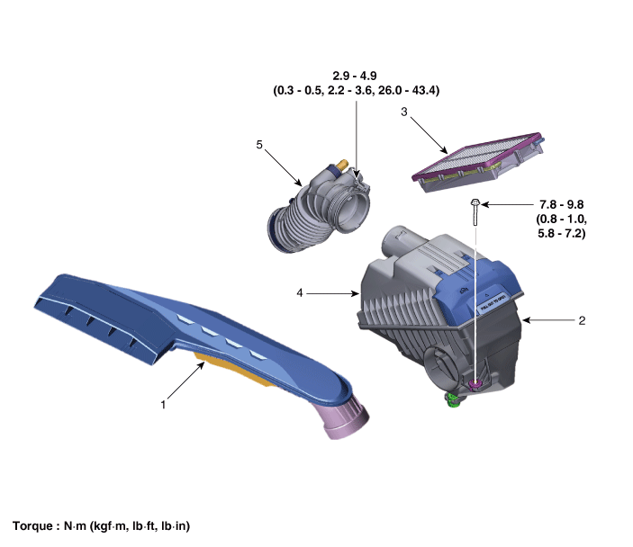 2. Корпус воздухоочистителя 3. Элемент воздухоочистителя |