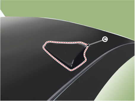 Снимите антенну на крыше (C), ослабив крепежную гайку (B).