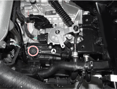 Залейте 0,7 л ATF SP-IV через заливное отверстие ATF после снятия болт с проушиной (А). [G 2,0 МПа - A6MF1-2]